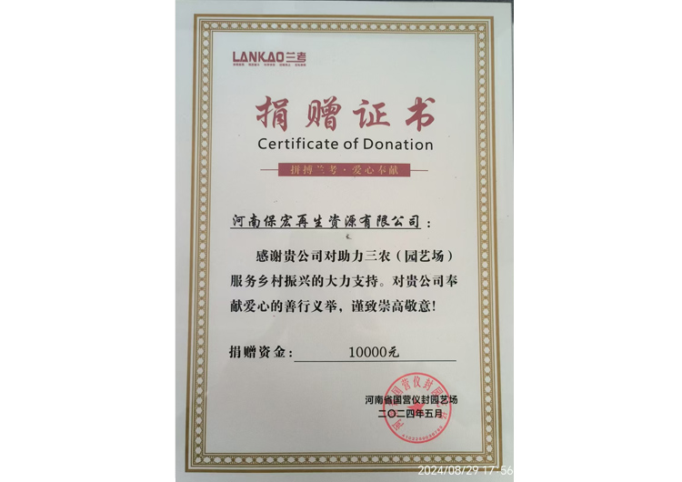 捐贈(zèng)證書
